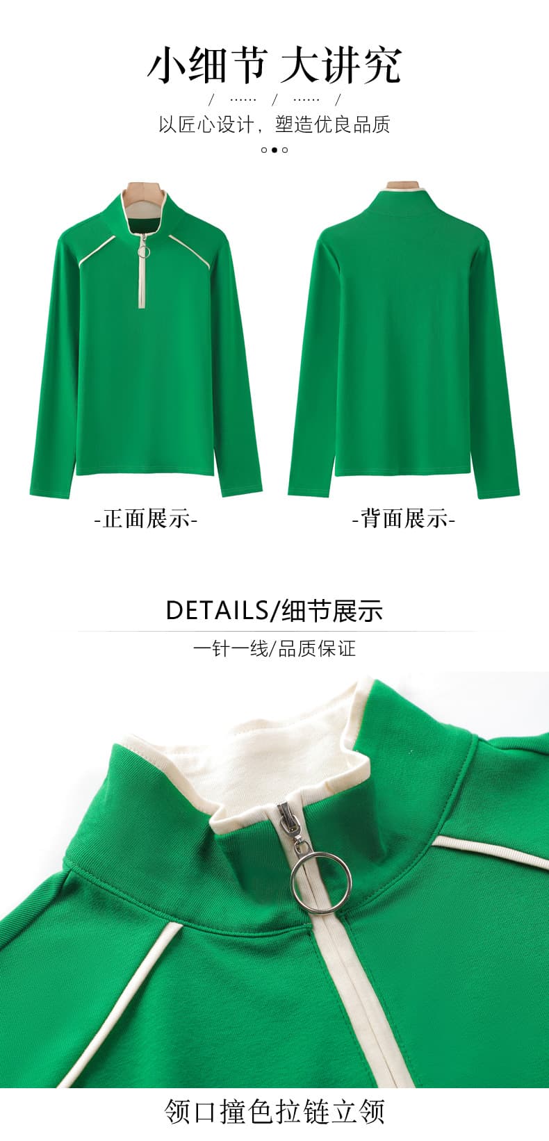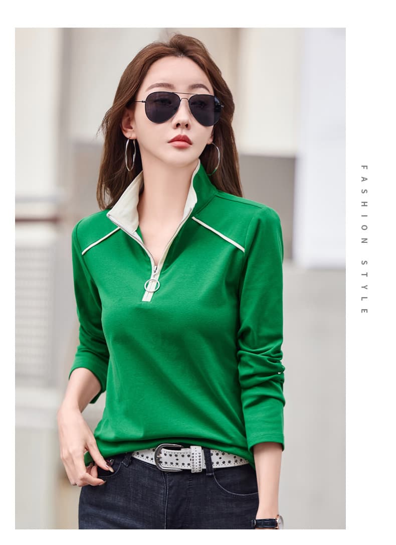 鼠标滚轮纯棉半拉链拼接撞色长袖t恤女春季新款百搭带领上衣打底衫潮